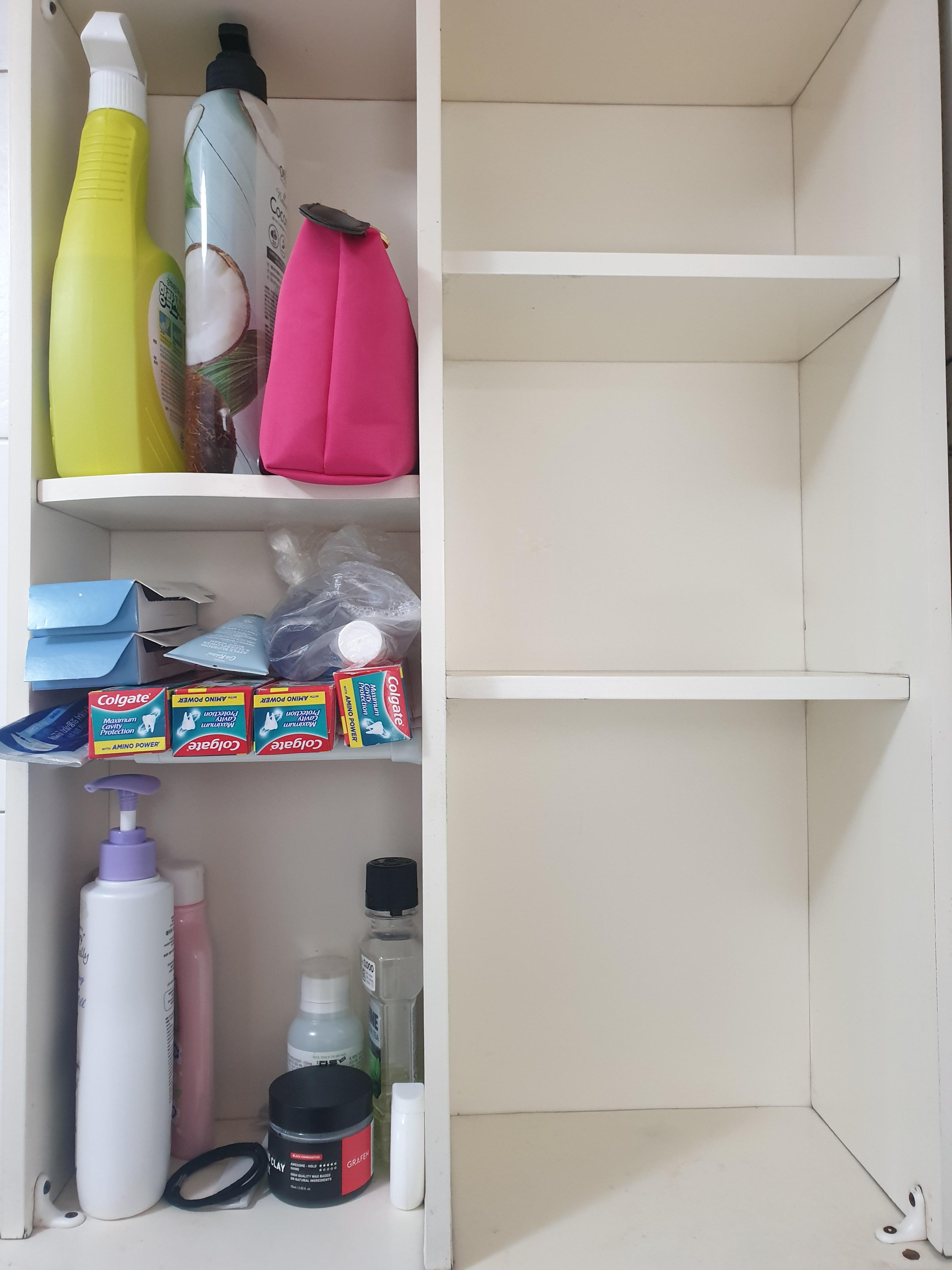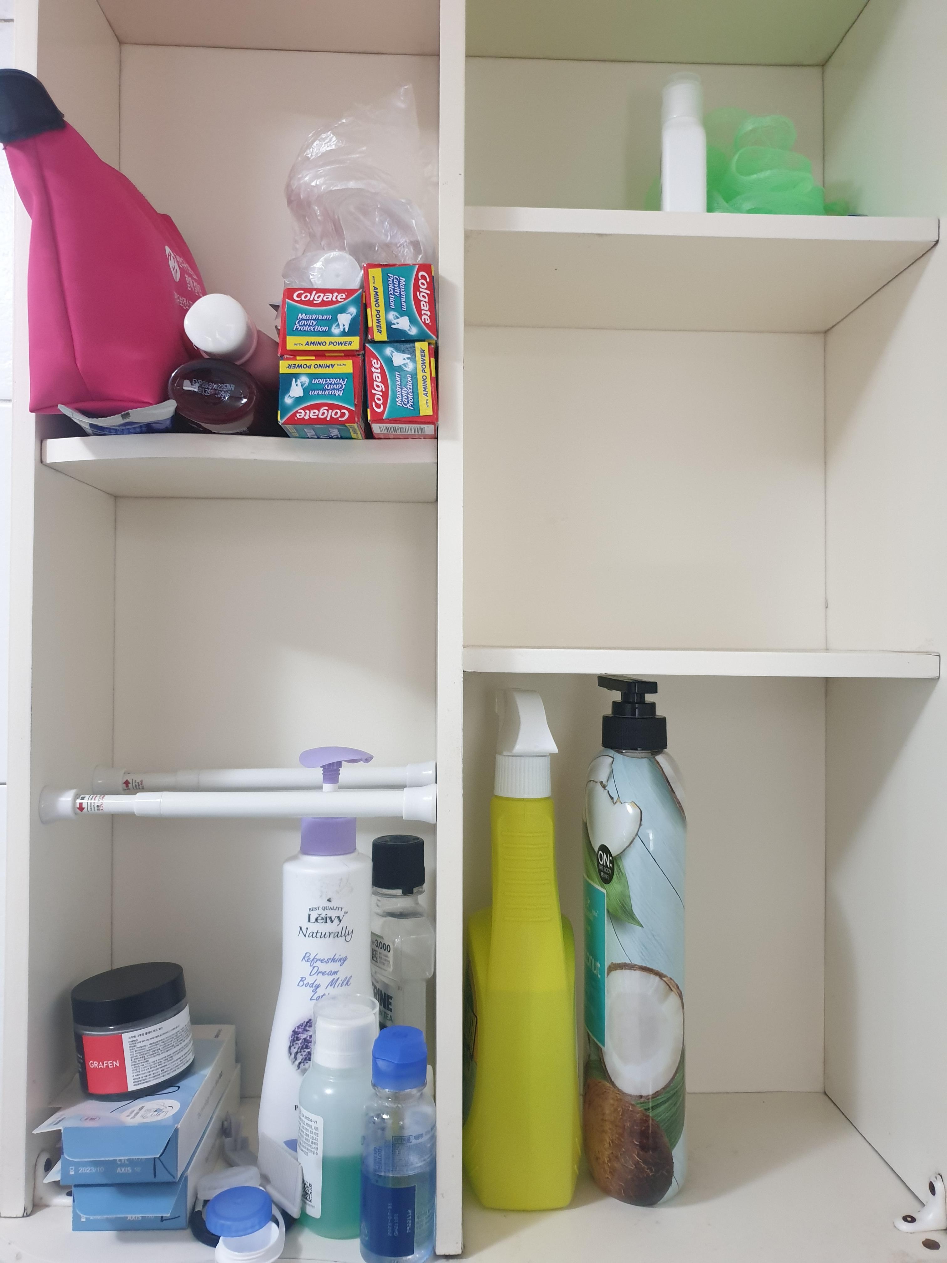 화장실 안에 있는 선반의 일부 칸 크기가 어정쩡해서