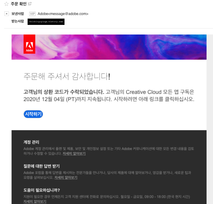 어도비 계정으로 사용하시는 메일 들어가보시면