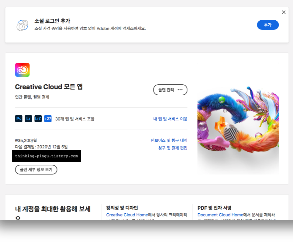 어도비 플랜을 이미 사용하고 있었더라도 이걸 새로 등록하면
