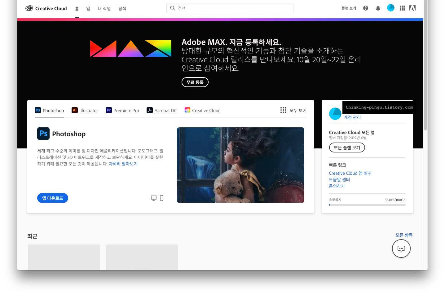라씨 외장하드 구입 후 어도비 CC 플랜 등록하는 방법