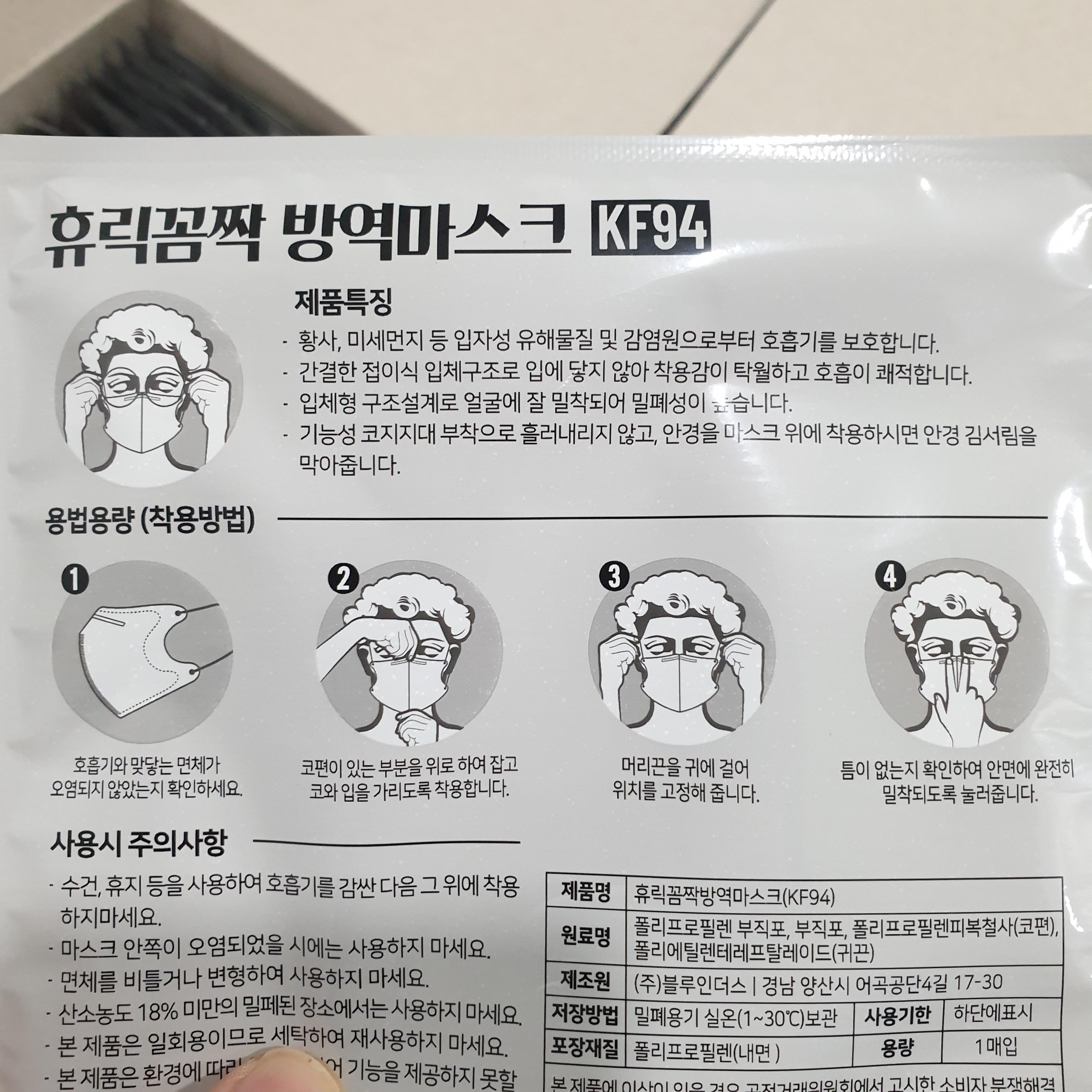 제품 정식 이름은 "휴리꼼짝 방역마스크"인 것 같은데