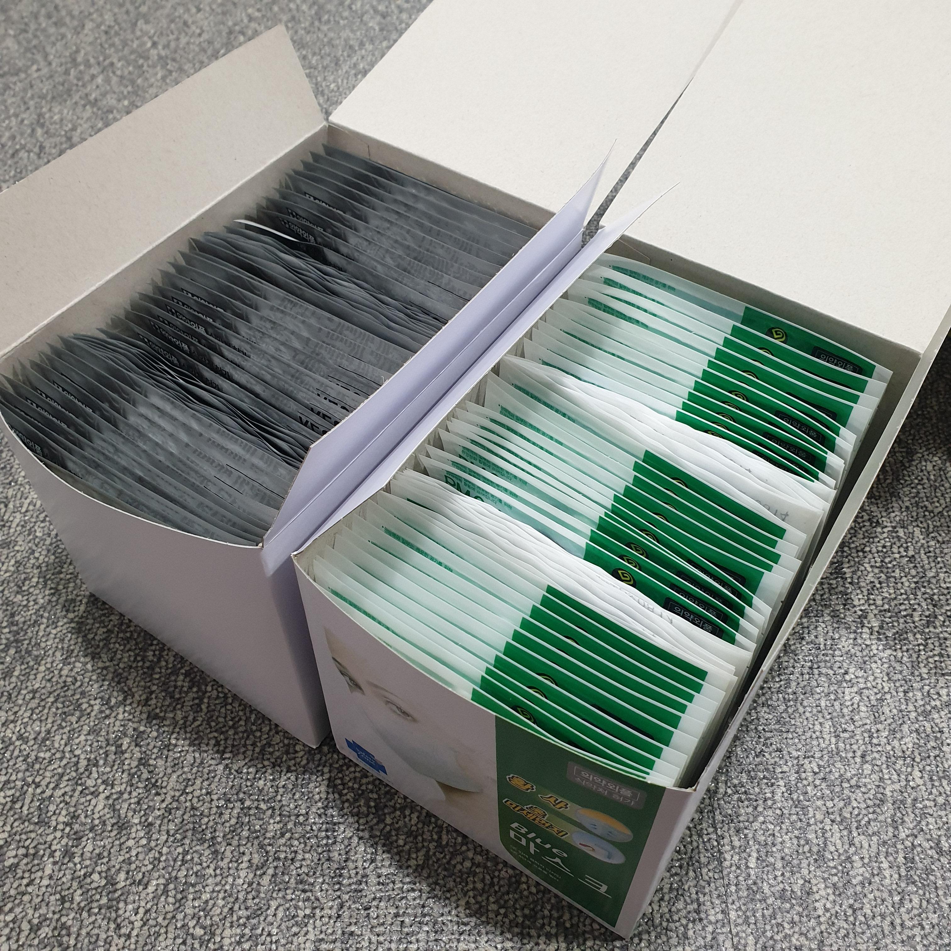 왼쪽이 이번에 산 블루본 마스크, 오른쪽은 다른 제품입니다.