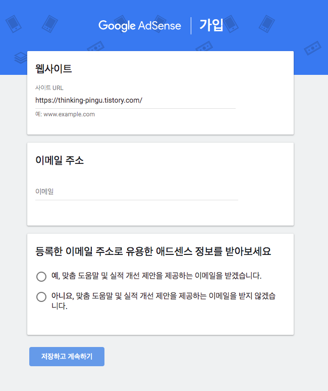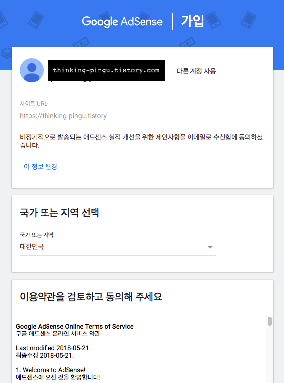 애드센스 가입 창이 뜹니다.