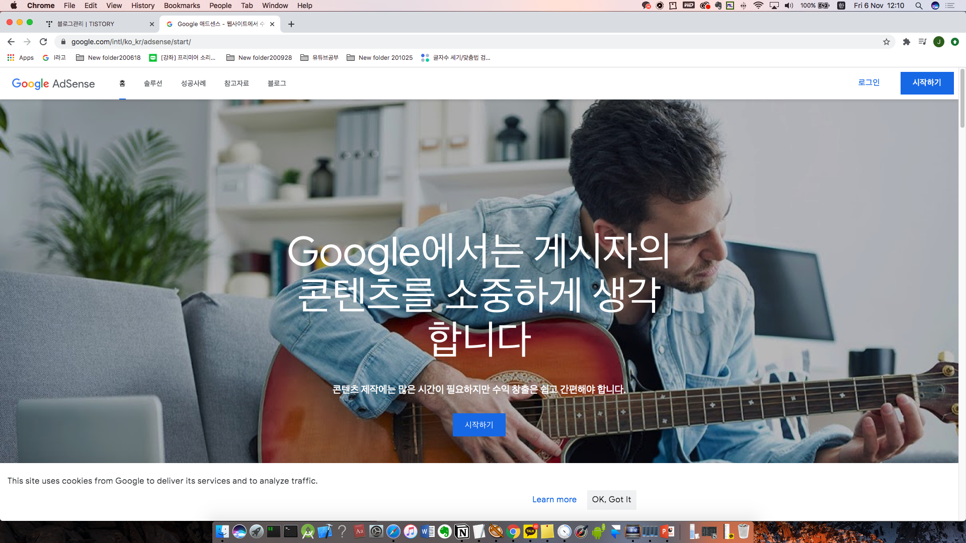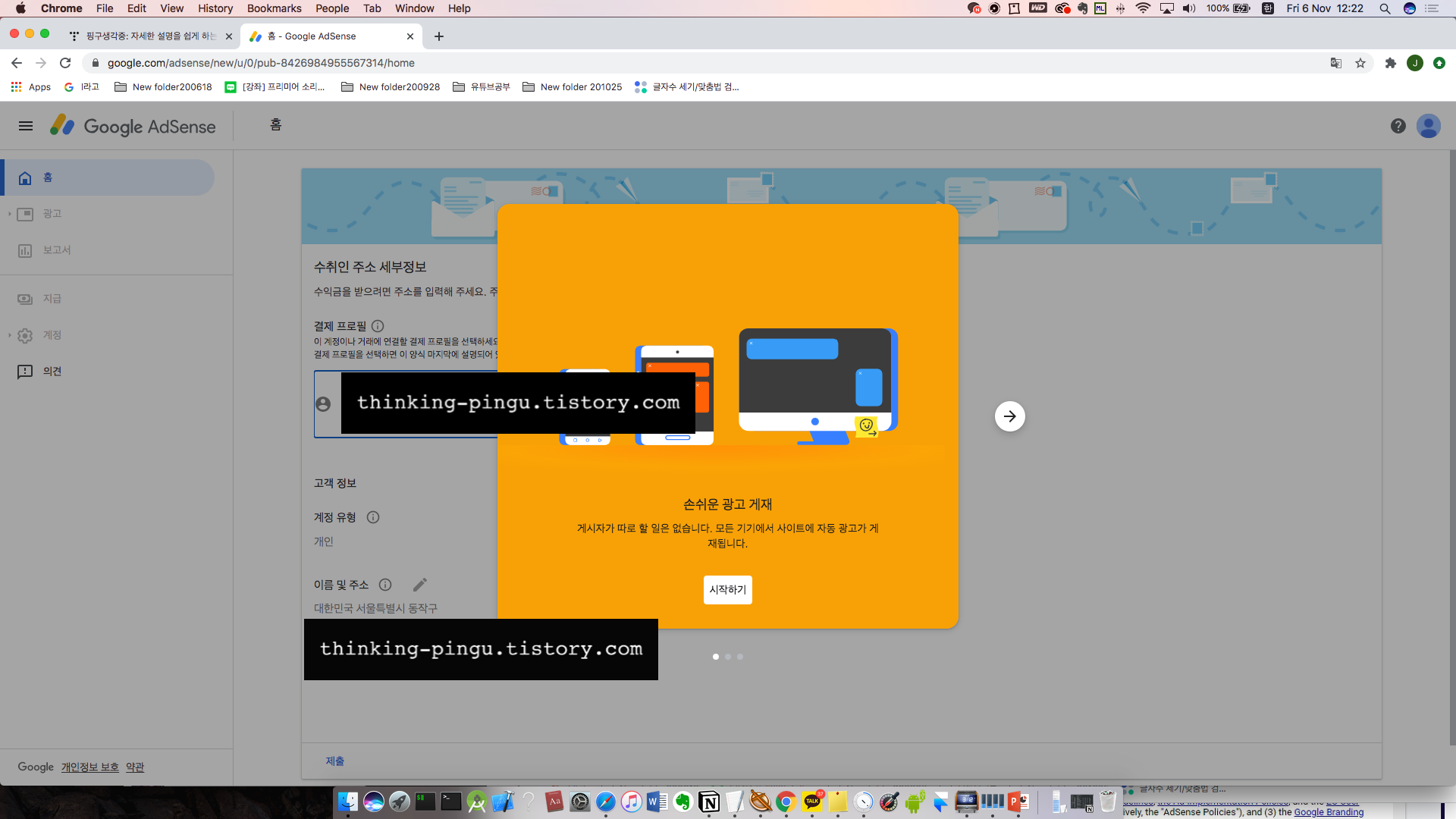 제가 11월 6일날 처음으로 구글 애드센스에 가입을 하고