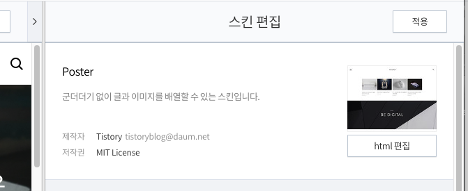스킨 편집 창 내 html 편집 클릭.