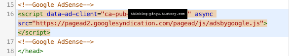 다른 코드들이랑 쉽게 구분하기 위해서 구글 애드센스라고 메모를 해둔 겁니다.