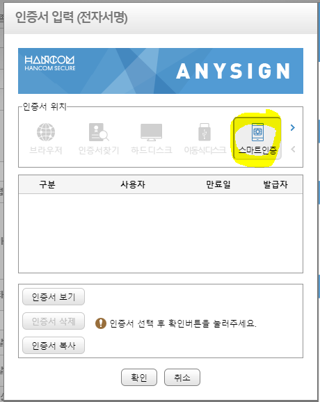 "스마트인증"을 클릭하시면