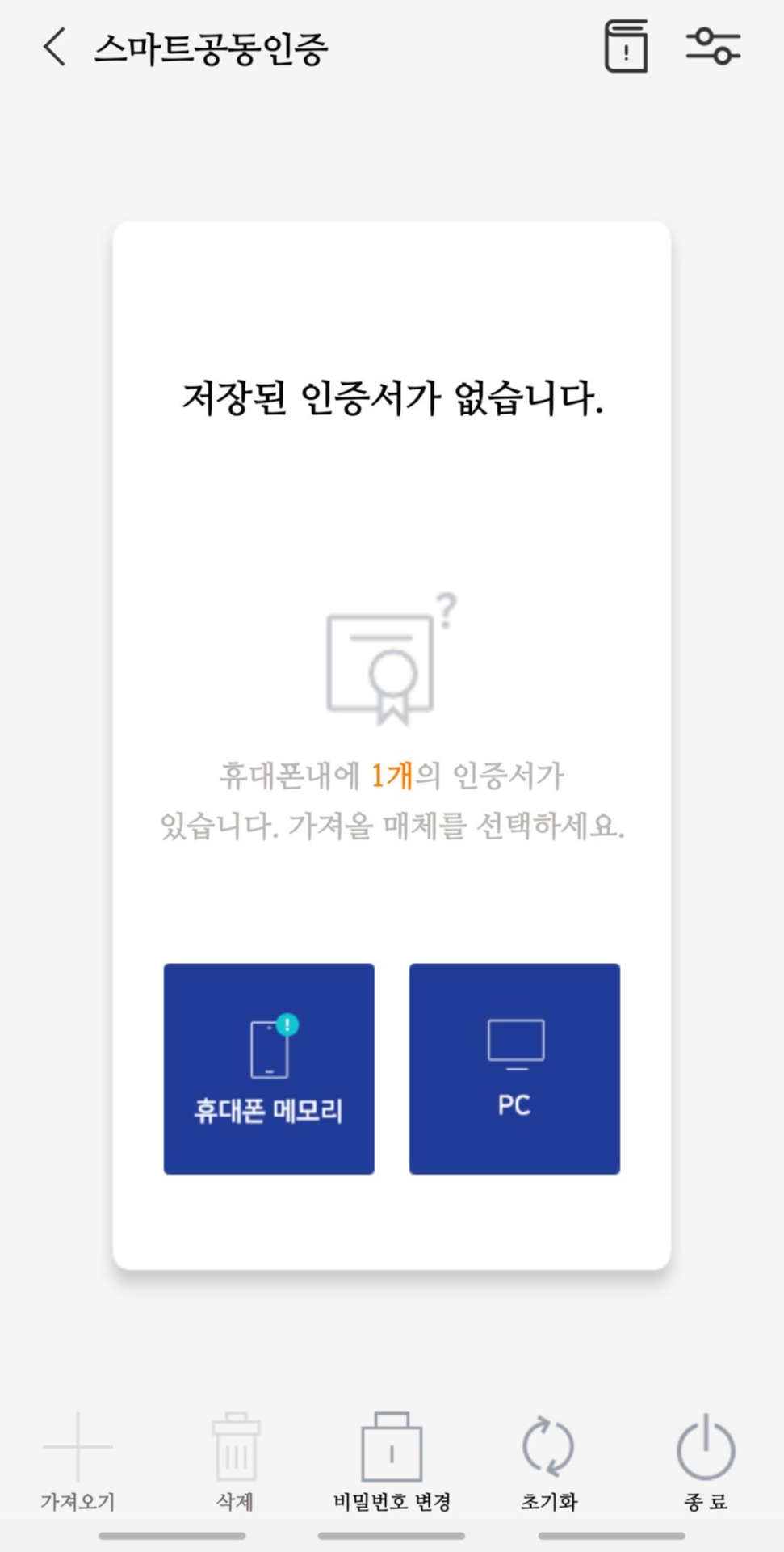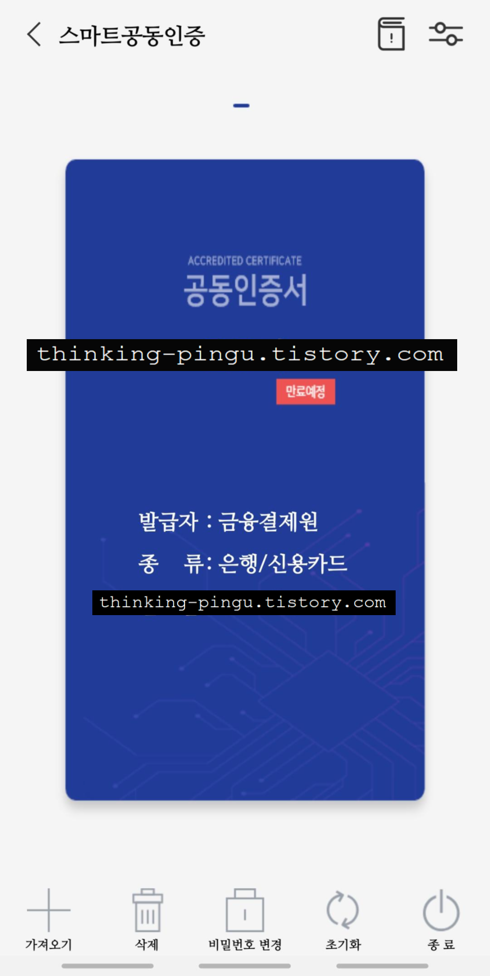 5. 저는 폰에 있는 인증서를 불러왔습니다.