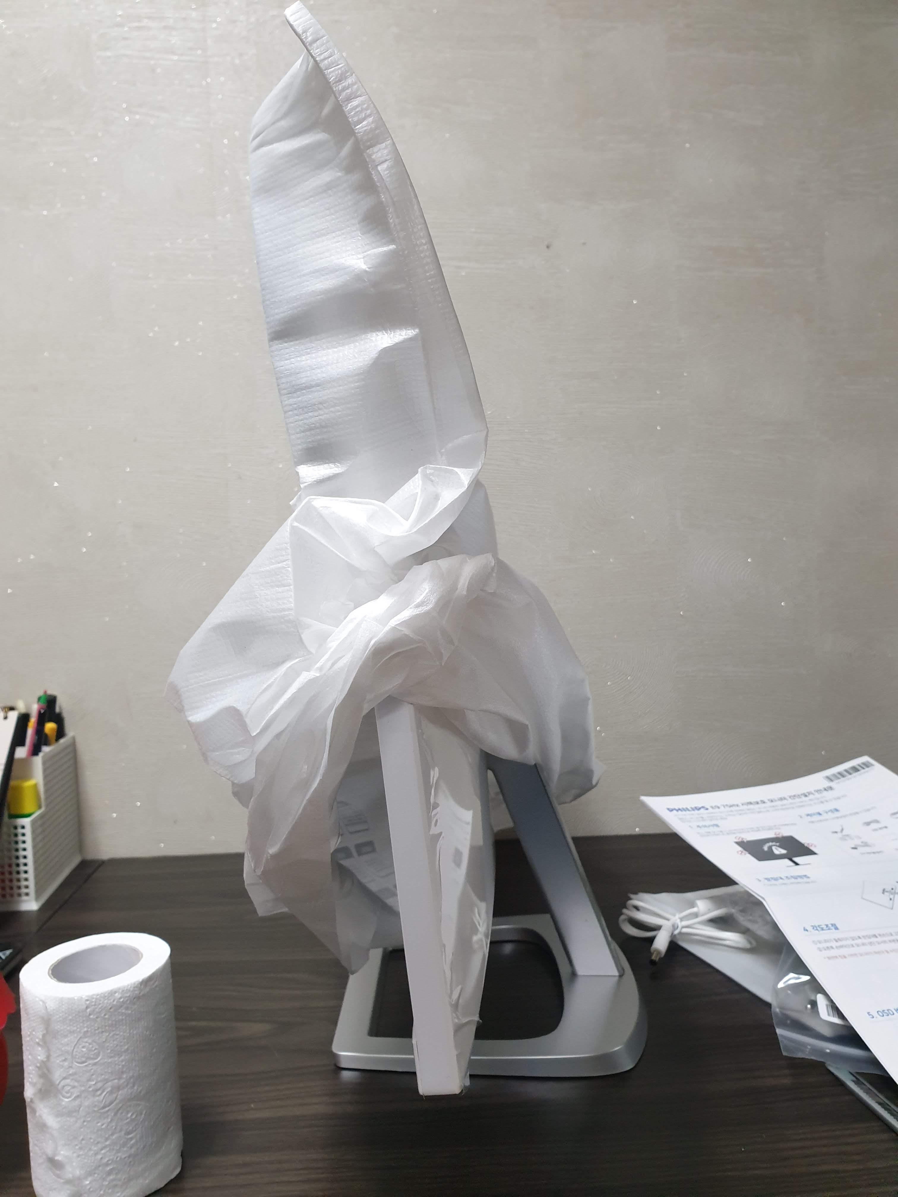 모니터에 씌워져있는 포장지는 아직 안 뺐습니다.