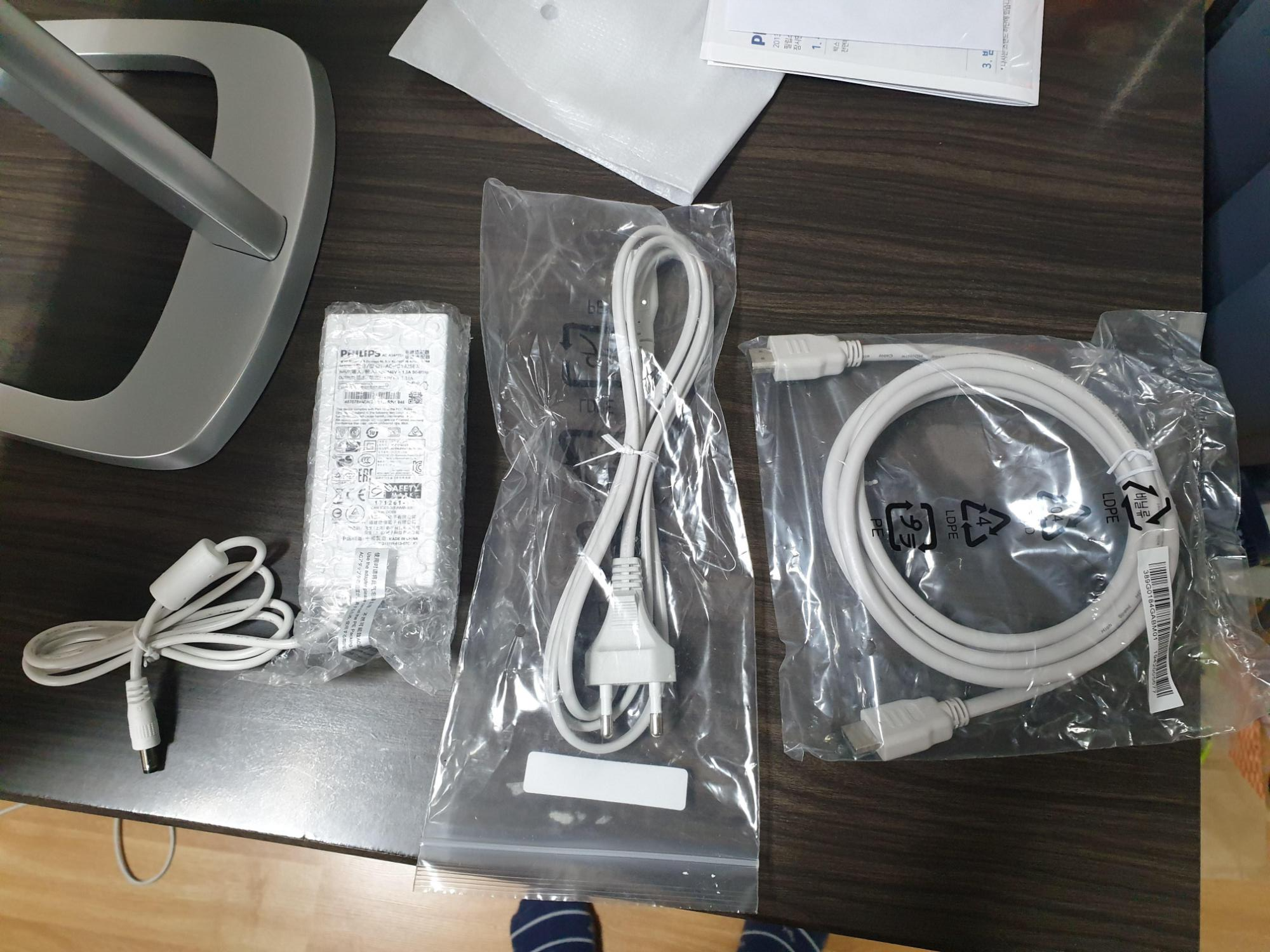 왼쪽 두 개는 모니터랑 콘센트를 연결해줄 선,